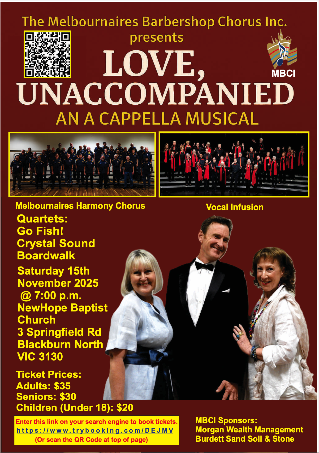 Rose Olsen, Kate’s (Alto) Mum, has discount tickets for Muriel’s wedding on Wed 10th April @ 1:00pm. (1st week of the school holidays). Tickets are $90. Rose gets very good seats. If you’re interested please let Kate or Peg know or contact Rose on rosie@billgrove.com Thank you. Thanks, Peg Gill (2nd soprano) |